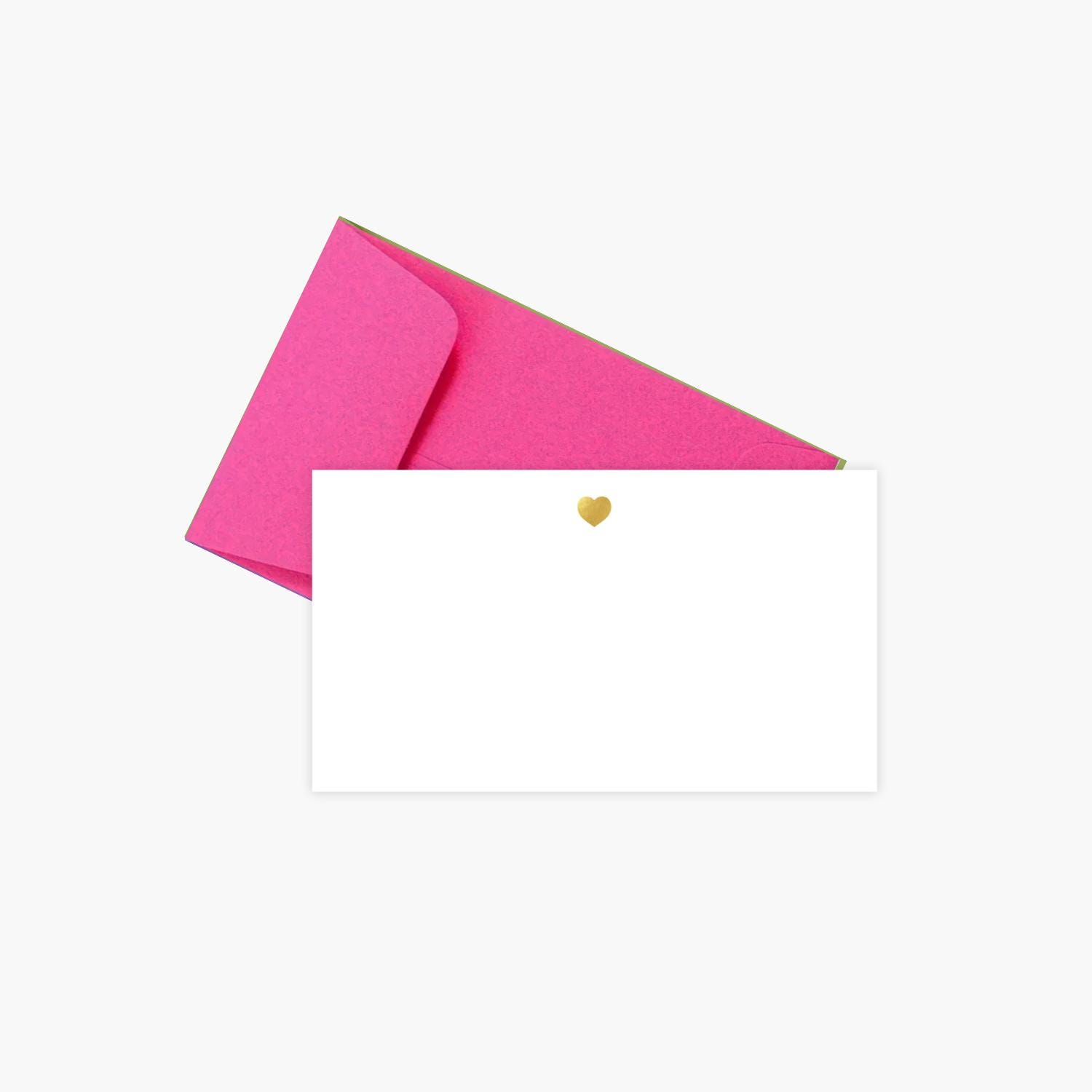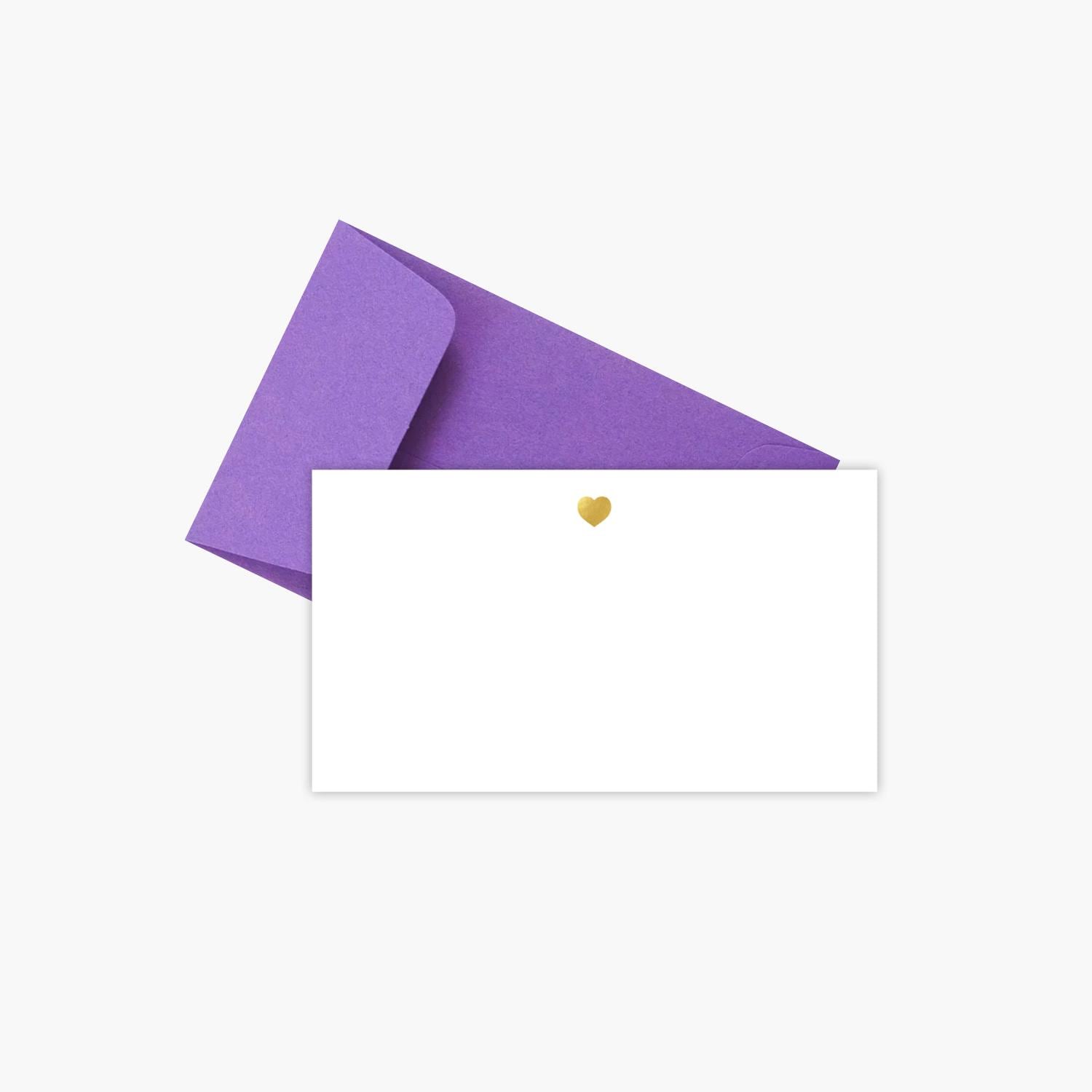 When you don't have too much to say, these enclosure cards are perfect! Each set of 8 comes with perfect little gold foil hearts printed on 2 x 3.5 luxe paper. Choose from a variety of envelope colors!